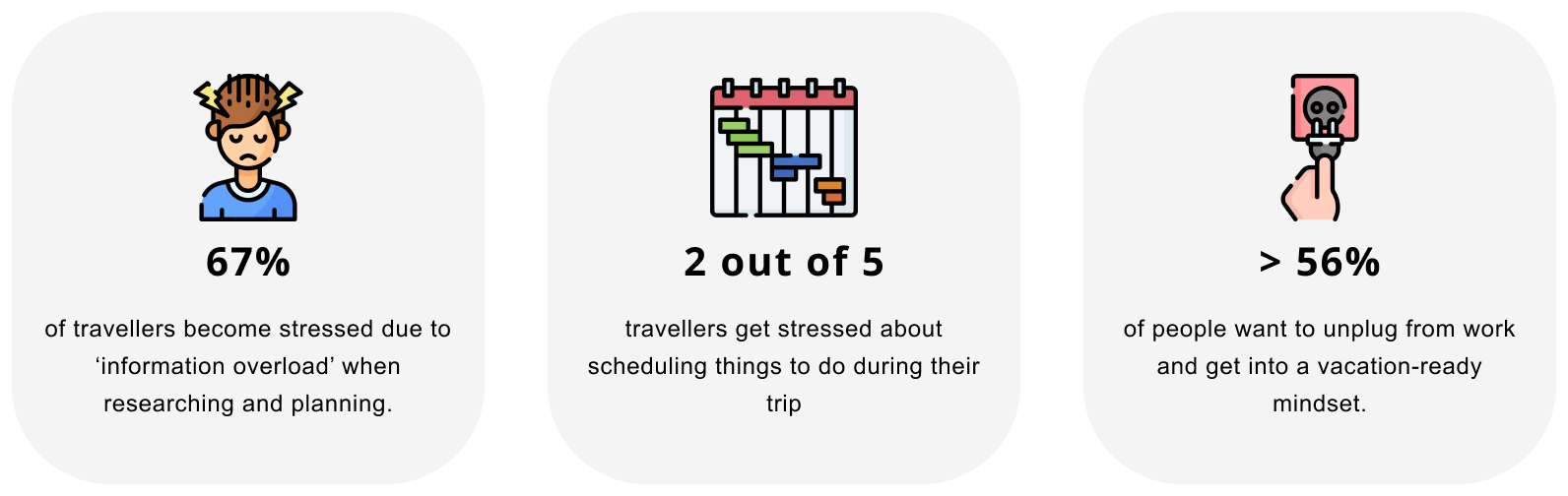 Time: Planning a trip can be very time-consuming for travellers, as they often use multiple platforms to gather information. Their primary motivation for traveling is to relax and take a break from their everyday lives.