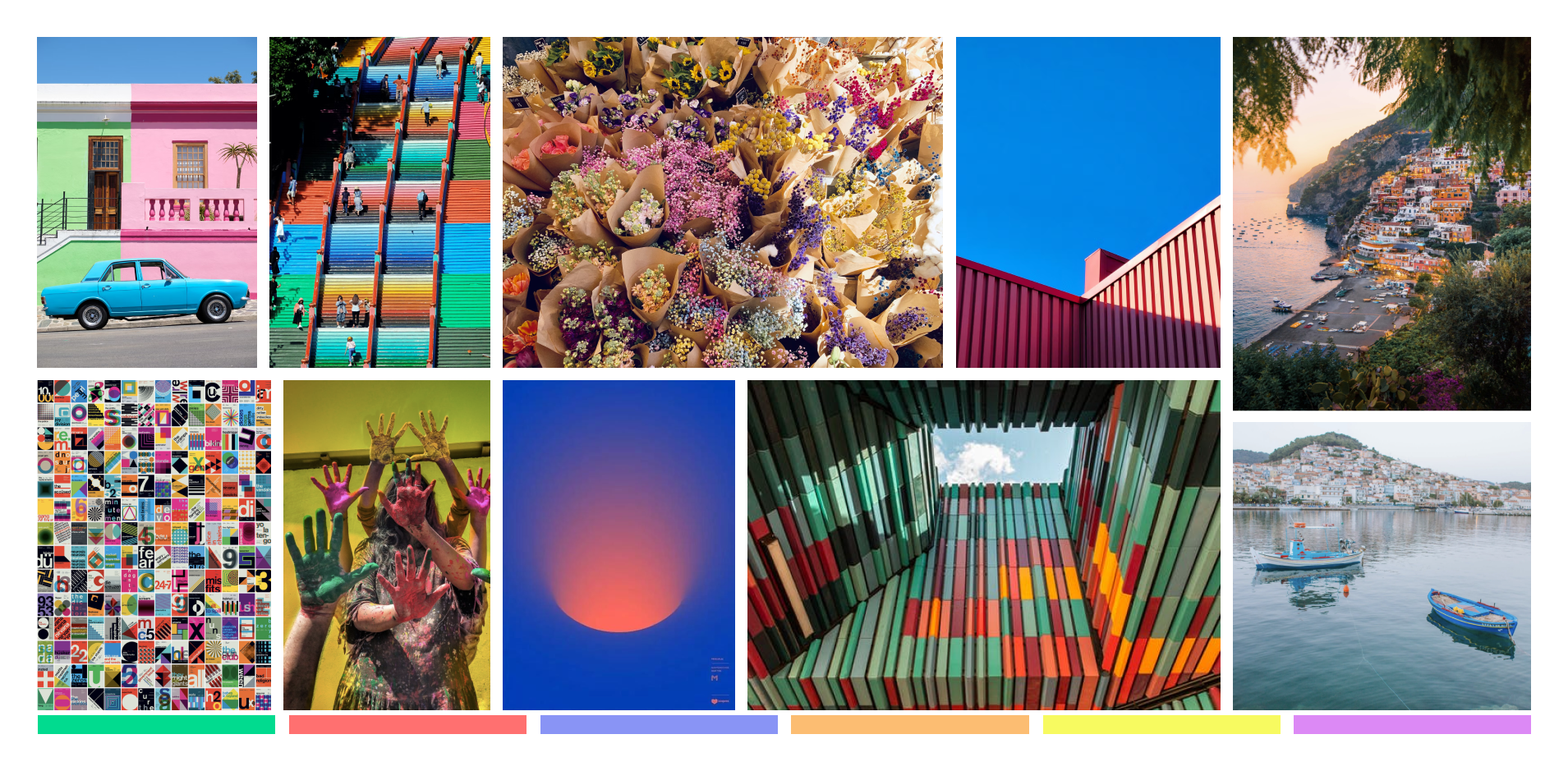 After brainstorming adjectives, I gathered images for my mood board that reflect those qualities. These visuals will help convey the brand's identity and evoke the feelings of excitement, spontaneity, fun, culture, vibrancy, energy, relaxation, and happiness.